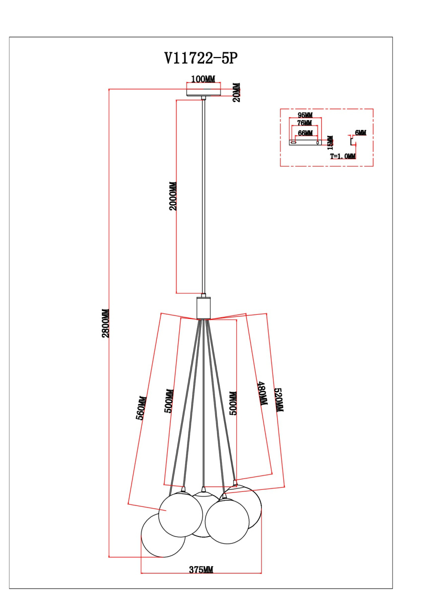 Светильник подвесной Moderli V11722-5P Renny