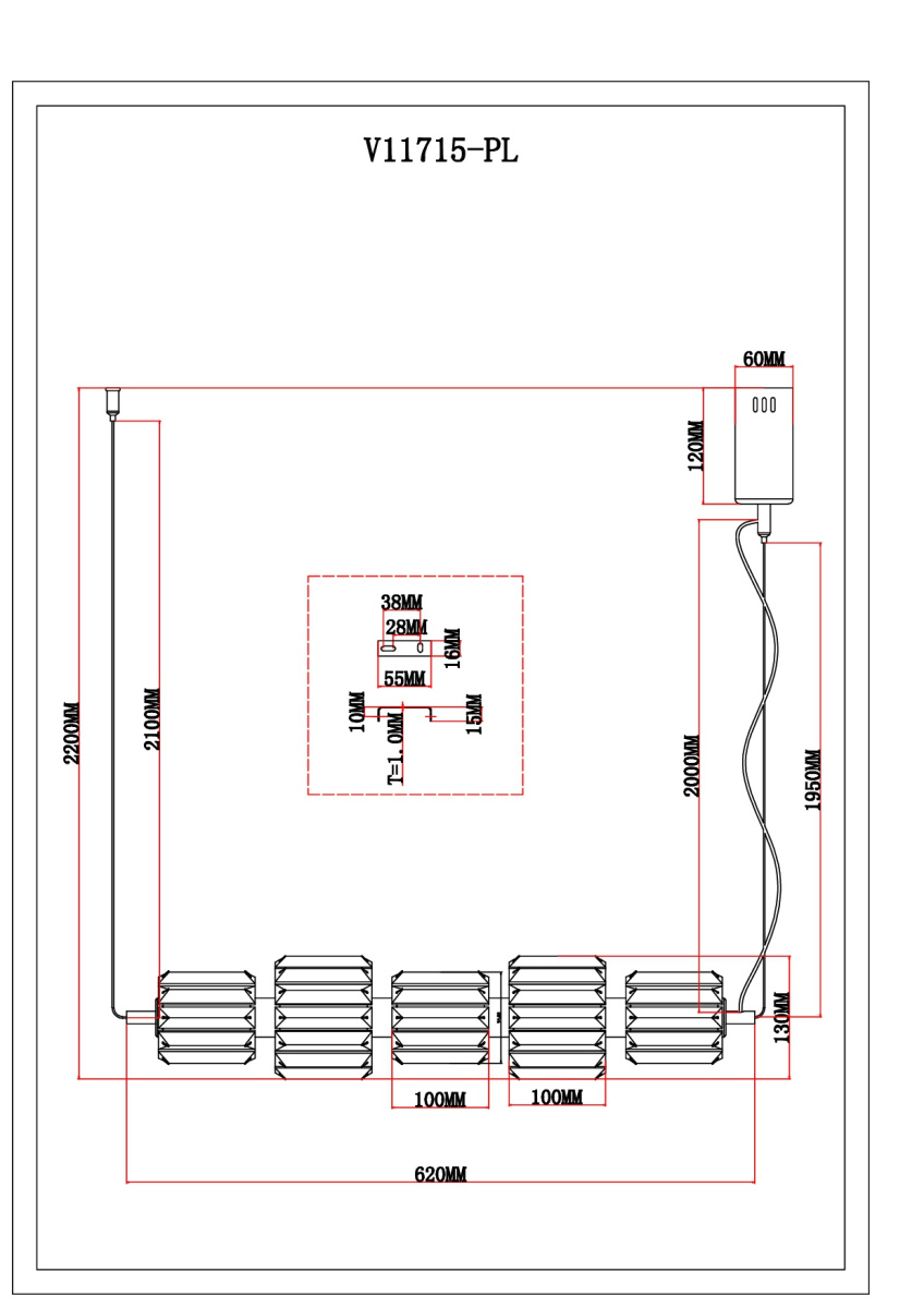 Длина подвеса, мм 180-120