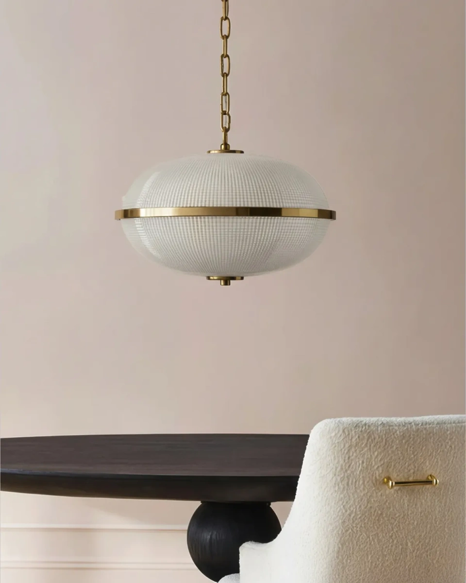 Золотой подвесной светильник "Гейбл" с прозрачным плафоном - это элегантное решение для современных и интерьеров в американском стиле. Модель выполнена в благородном сочетании брашированной латуни и прозрачного стеклянного плафона, благодаря чему светильник выглядит стильно и утончённо. Шарообразная форма абажура создаёт мягкое, равномерное освещение и наполняет пространство уютом. Светильник имеет размеры 31 см в высоту и 42 см в диаметре, а регулируемая длина подвеса от 41 до 186 см позволяет адаптировать его под разные высоты потолков. Корпус изготовлен из прочного металла, а стеклянный плафон отличается аккуратной текстурой и хорошо рассеивает свет. Светильник оснащён цепью длиной 150 см, которая подчёркивает его классический характер и делает внешний вид более выразительным. Длина одного звена цепи составляет 4 см, что позволяет удобно регулировать высоту подвеса под особенности помещения и желаемый уровень освещения. Благодаря этому светильник легко адаптируется как для высоких, так и для стандартных потолков, сохраняя гармоничные пропорции и эстетичный внешний вид. Модель рассчитана на три лампы с цоколем E27 мощностью до 40 Вт каждая, что обеспечивает комфортное освещение столовой, гостиной или кухонной зоны. Потолочное крепление диаметром 13 см выглядит аккуратно и надёжно фиксирует светильник.