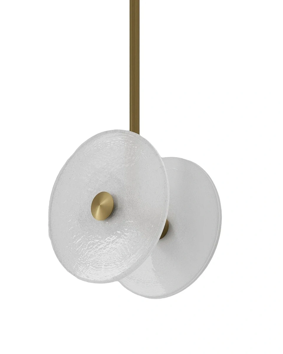 Золотой подвесной светильник "Милфорд" — лаконичный акцент для современного интерьера. Два фактурных стеклянных диска мягко рассеивают свет, создавая комфортное, ненавязчивое освещение без бликов. Золотистый металлический стержень и центральные декоративные элементы подчеркивают графичность формы и легко сочетаются с мебелью и фурнитурой в темных оттенках. Модель органично смотрится над барной стойкой, обеденным столом, в гостиной или спальне, поддерживая стили минимализм и soft-contemporary. Светильник дарит уютную атмосферу и не перегружает пространство, оставаясь стильным акцентом в любой комнате. Отличный выбор для тех, кто ищет функциональный и эстетичный свет в одном изделии.