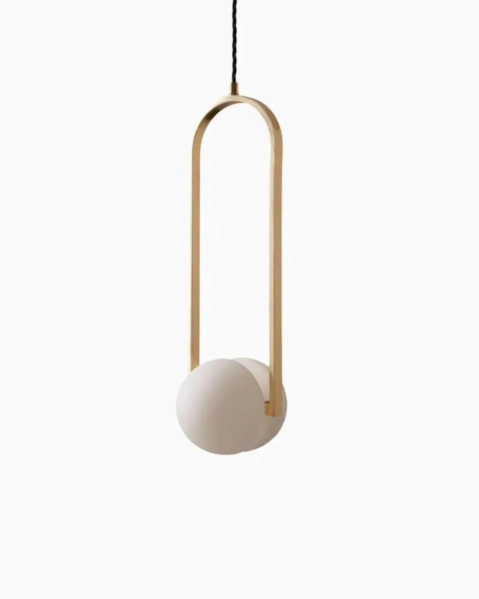 Золотой подвесной светильник "Уэлс" - это изысканный акцент для современного интерьера. Его лаконичная форма с дугообразной рамой в тёплом золотом оттенке гармонично сочетается с матовым белым плафоном в виде сферы. Светильник создаёт мягкое и уютное освещение, добавляя пространству элегантность и утончённость. Отлично подходит для установки над обеденным столом, в гостиной или в зоне отдыха, а также эффектно смотрится в композиции из нескольких светильников.