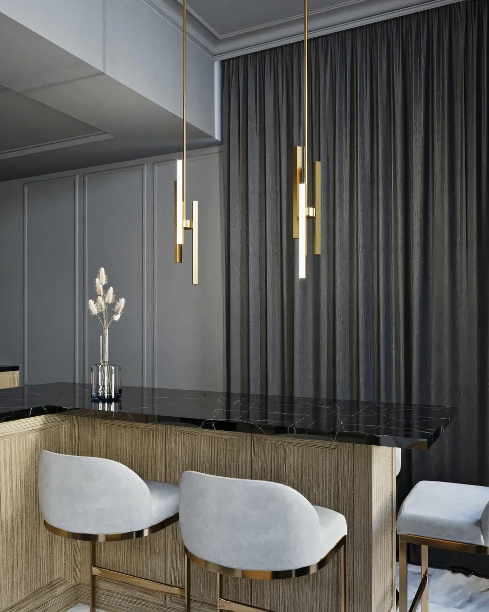 Золотой светодиодный подвес “Дойл” — это идеальное сочетание функциональности и стиля. Он состоит из трех полос света, расположенных на разной высоте и соединенный посередине, создавая эффектный визуальный эффект. Этот элегантный световой акцент станет прекрасным дополнением для вашего интерьера, придавая ему современный вид. Этот небольшой светильник предназначен для использования в разных помещениях, таких как барная зона, кухонный остров или обеденная зона, зона на прикроватными тумбами. Он привлечет внимание своим стильным дизайном и возможностью создания насыщенного и приятного света. Светильник оборудован множеством встроенных светодиодных ламп, которые обеспечивают высококачественное освещение. Светодиоды являются экологичными и энергоэффективными, что делает этот подвес экономичным в использовании. Высота подвеса также регулируется, что позволяет настроить его под свои потребности и предпочтения. Этот светильник не только эффективно освещает помещение, но и станет стильным элементом декора. Он позволит создать приятную и комфортную атмосферу в вашем доме или офисе, добавив изысканный штрих в вашу обстановку.