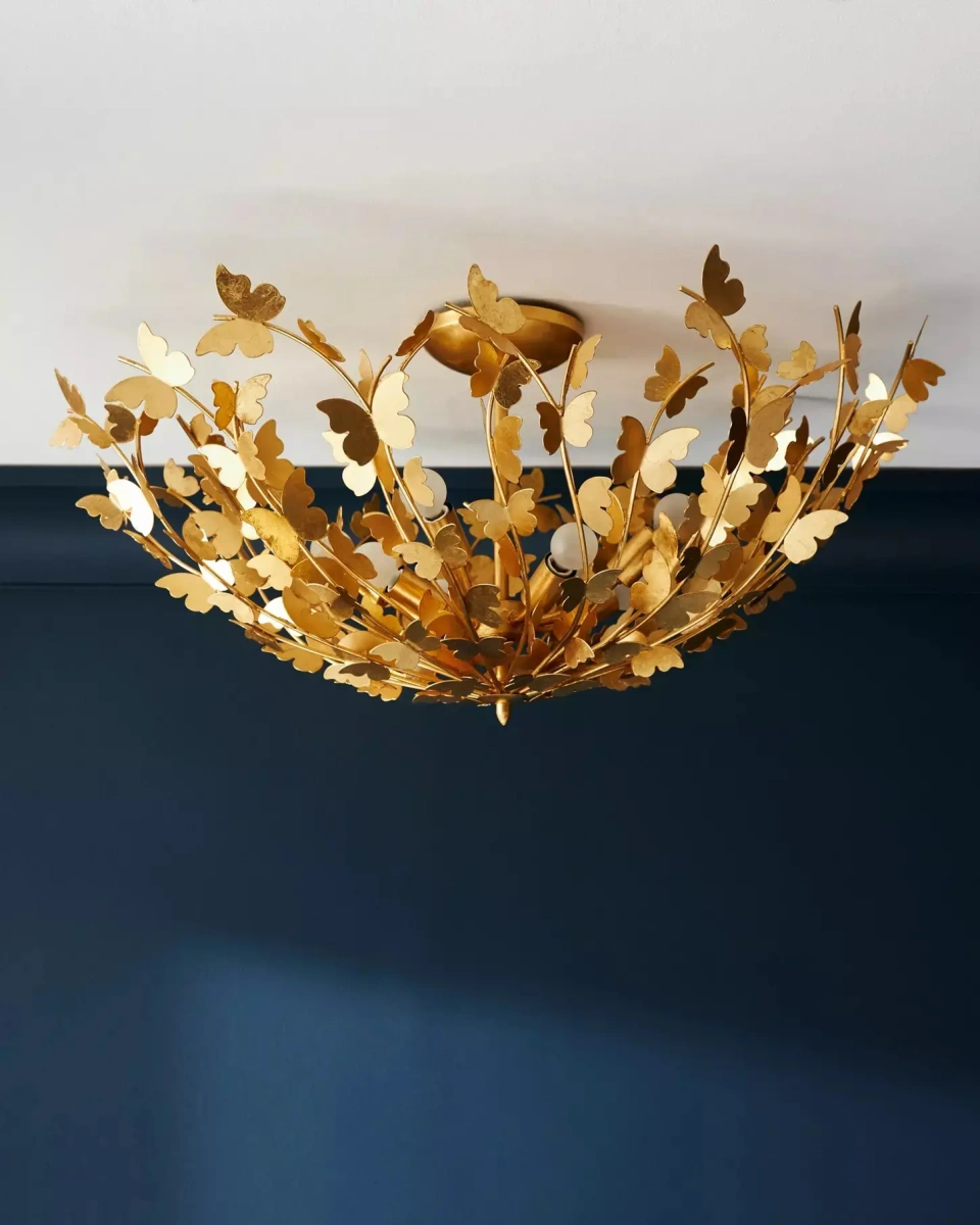Потолочный светильник "Кемптон" представляет собой великолепное сочетание необычного дизайна и утонченной функциональности. Его игривый мотив из золотых силуэтов бабочек создает удивительный визуальный эффект, наполняя пространство мягким и теплым светом, сияющим вокруг осветительного прибора. Этот потрясающий светильник станет украшением для любого интерьера. Этот потолочный светильник идеально подойдет для гостиной, столовой или спальни, придавая каждому из этих помещений особый и уникальный стиль. Он будет прекрасно смотреться в интерьерах различных стилей, от классики до современности, подчеркивая вкус его владельца.