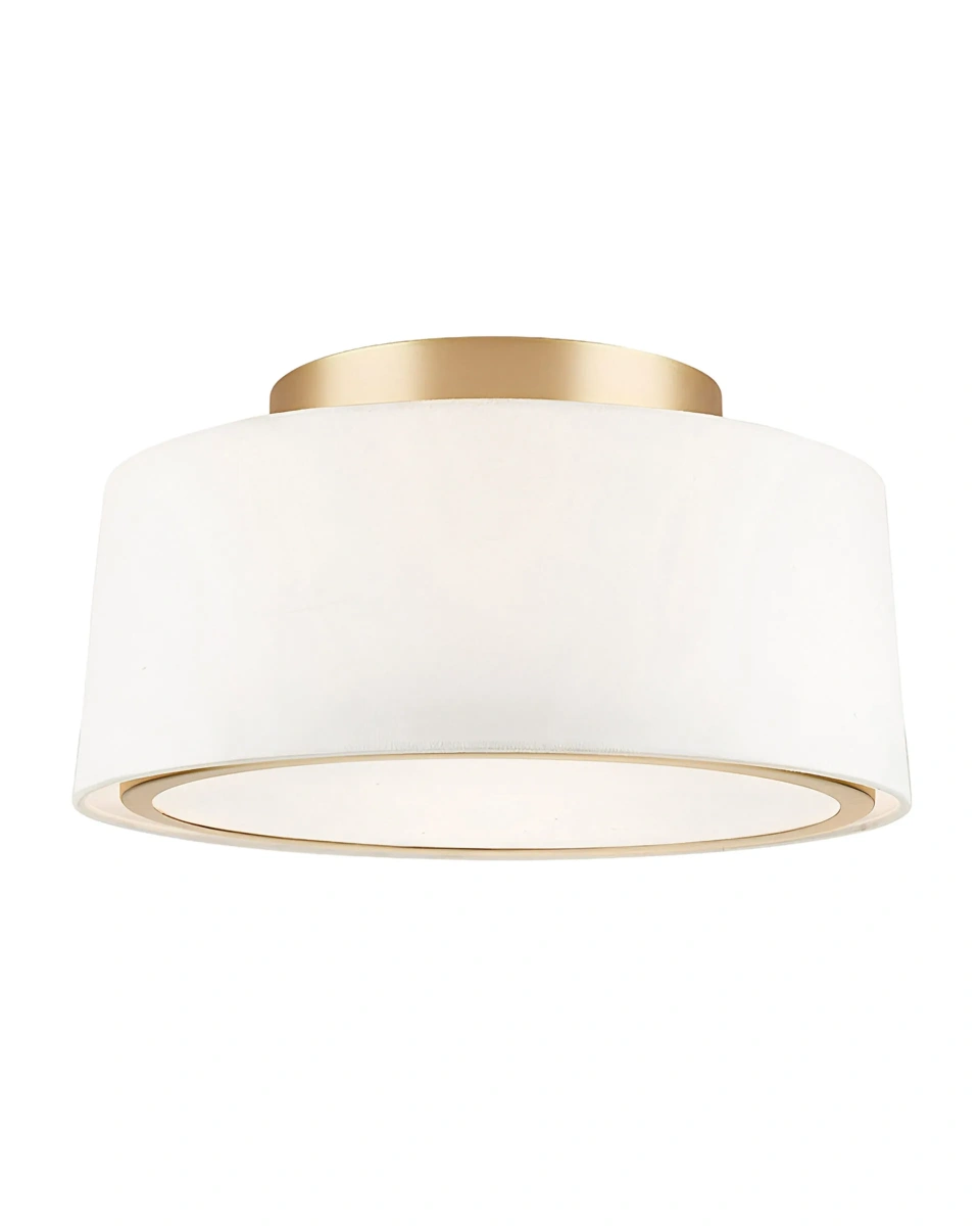 Большой золотой потолочный светильник "Флемиш" - это круглый белый абажур с золотым металлическим акцентом вокруг матового рассеивателя. Конструкция светильника крепится на планку скрытого монтажа, что создает минимальное расстояние между светильником и потолком. Дизайн светильника вдохновлен стилем "Мид-сенчури", который делает его универсальным, подходящим для различных стилей декора. Светильник идеально подходит для освещения гостиной, столовой, спальни или других помещений, где требуется функциональное освещение. Он создаст приятный и уютный свет, помогающий расслабиться и создать атмосферу комфорта в вашем доме.