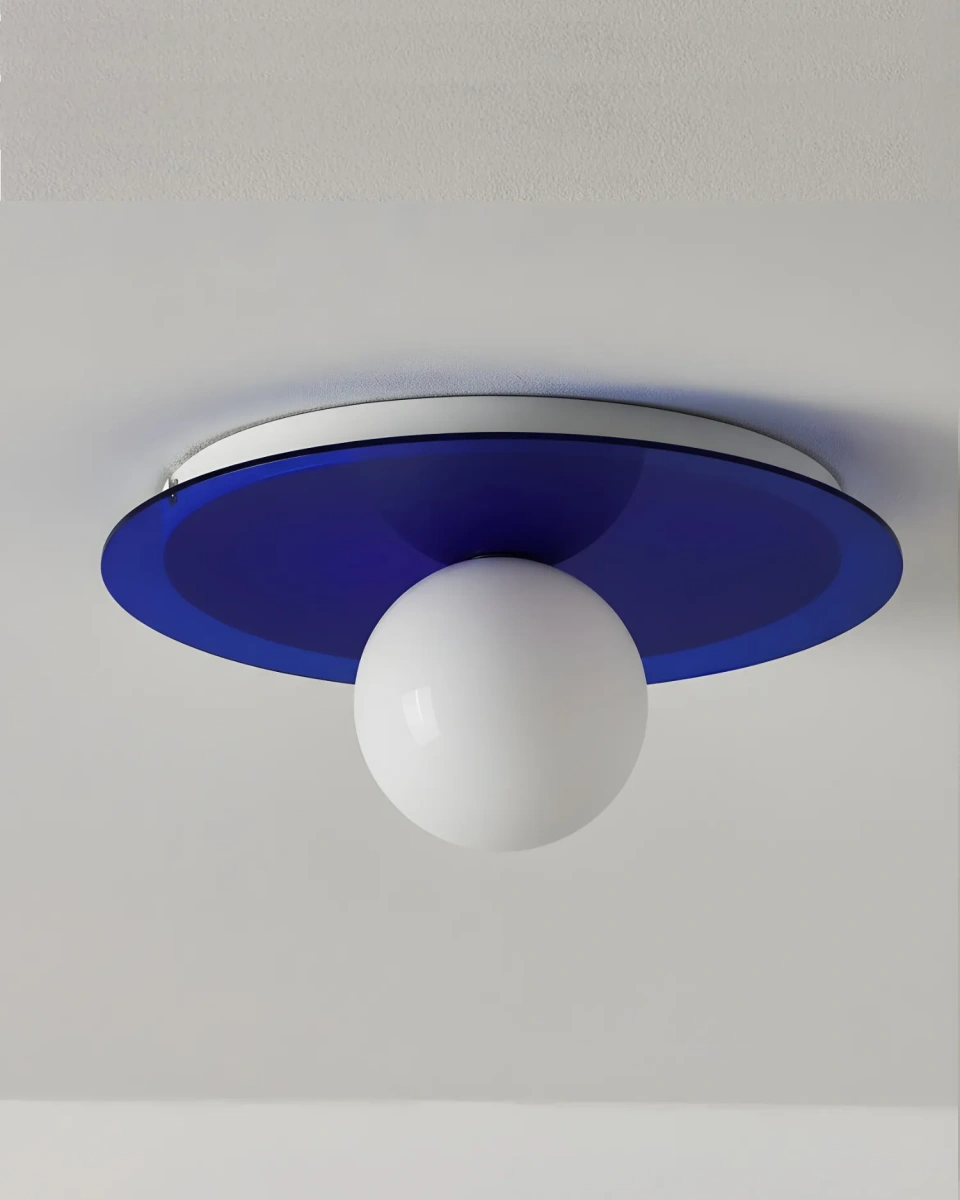Лазурный настенно-потолочный светильник "Ноа" - выразительный дизайнерский акцент, который сочетает графичную форму и насыщенный цвет. Глубокий лазурный диск создаёт эффектную игру света и тени, а центральный белый стеклянный плафон в форме шара мягко рассеивает свет, формируя комфортное и уютное освещение. Контраст между цветным основанием и матовым плафоном делает модель визуально лёгкой и запоминающейся. Светильник может устанавливаться как на стену, так и на потолок, что позволяет использовать его в самых разных зонах интерьера. Он отлично подойдёт для гостиной, спальни, коридора, холла или акцентной стены, а также для современных общественных пространств. Компактная форма делает его удобным решением для помещений с невысокими потолками. Модель «Ноа» гармонично вписывается в интерьеры в стилях современный, mid-century modern, art-modern, contemporary и эклектика. Светильник может использоваться как самостоятельный декоративный элемент или в композиции из нескольких светильников, добавляя пространству глубину цвета, динамику и дизайнерскую выразительность.