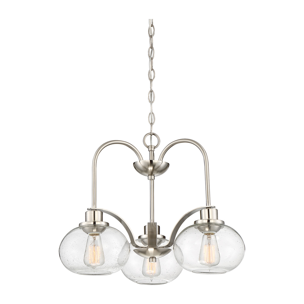 Люстра Elstead Lighting QZ-TRILOGY3-BN. Светильник особенно хорошо смотрится с винтажными лампами накаливания. Ностальгический, но в то же время шикарный дизайн с плафонами из прозрачного фактурного стекла. Коллекция привносит современную элегантность в стиль прошлых эпох. Основание в отделке - Матовый никель. Подходит для освещения гостинной, кухни, спальни, столовой. Цепь 1219 мм в комплекте