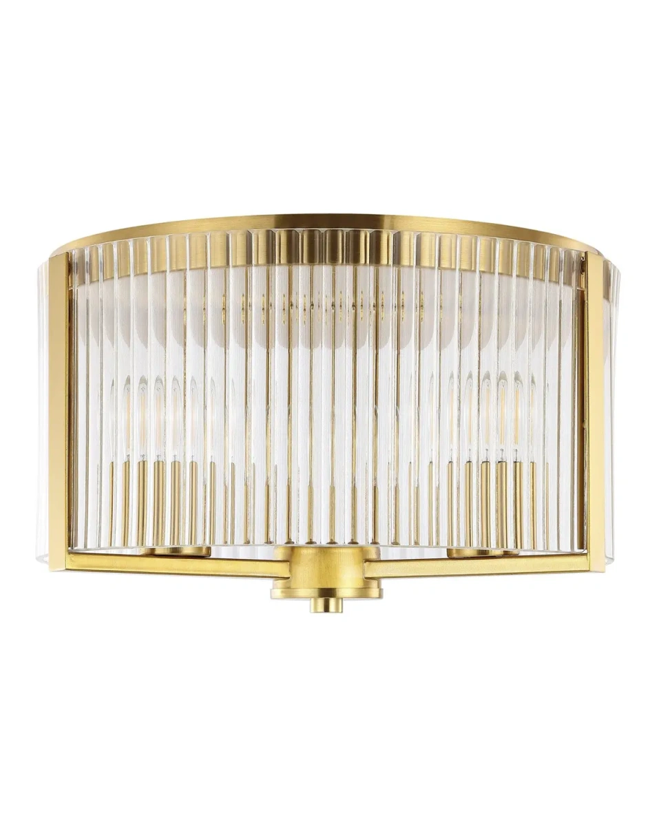 Потолочный светильник "Джетра" - это элегантное и стильное освещение выполненное в американском стиле, которое прекрасно впишется в любой интерьер. Этот потолочный светильник станет центральным элементом декора, придающим помещению особенный вид. Его металлический каркас выполнен в цветовой гамме - латунь. Плафон из прозрачного рифленого стекла будет подчеркивать декоративные лампы. Этот потолочный светильник "Джетра" отлично дополнит как современный, так и классический интерьер, а также станет стильным акцентом в любом другом стиле оформления. Он идеально подходит для функционального освещения гостиных, спален или кухонь, а также может быть использован в офисных помещениях или торговых залах.