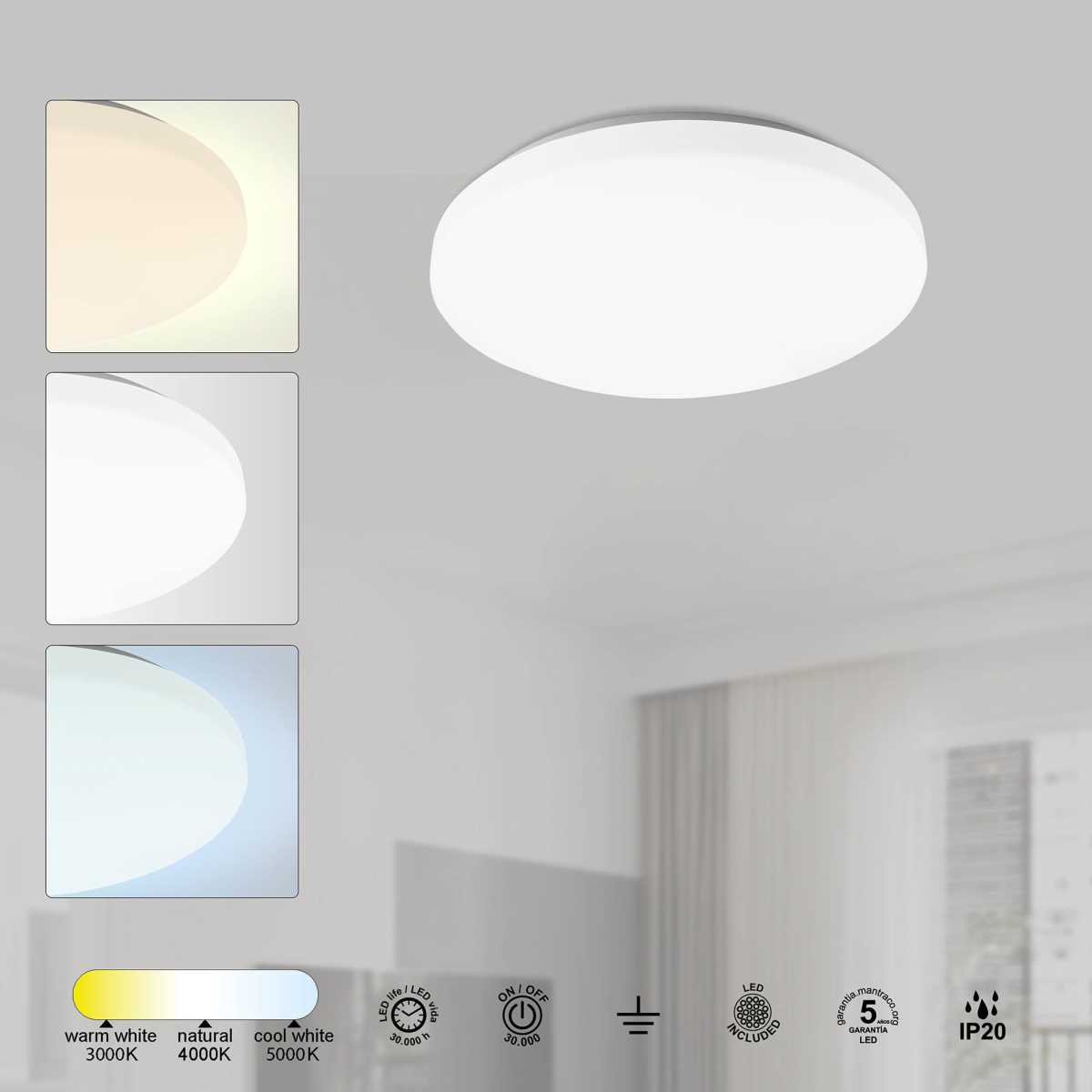 Цветовая температура, K 3000-5000K