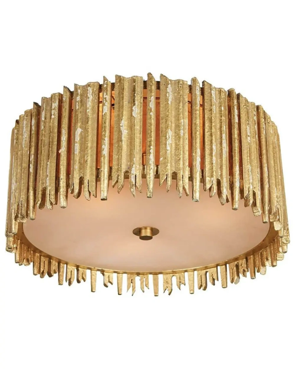 Золотой светильник "Краун" - это подвесной светильник сделан из нерегулярно расположенных деревянных прутьев, в стиле французский кантри. Эффект потёртости и винтажности, который был достигнут в процессе обработки материалов, создаёт ощущение, что этот светильник имеет собственную историю. Он идеально подойдет для тех, кто хочет добавить в интерьер несколько специально состаренных предметов интерьера, которые создают впечатление антиквариата, удачно найденных на блошином рынке, но при этом полностью современным по своему внешнему виду. Этот светильник создан для тех, кто ценит уникальность и хочет добавить в свое пространство нечто особенное, но при этом не потерять атмосферу уюта и теплоты в интерьере. Светильник "Краун" станет прекрасным решением для различных зон вашего дома: он украсит кухню, столовую, гостиную, прихожую.